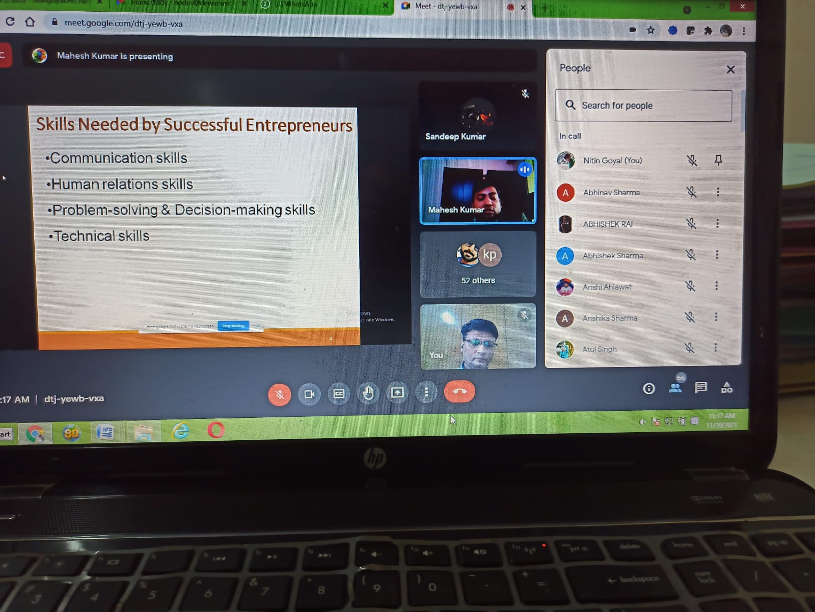 The Computer Science Engineering Department organized an online Guest Lecture on “Entrepreneurship in IT”.
